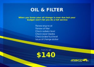 from $140 inc gst – Includes up to $47 of engine oil and a $15 oil filter. Pricing may vary depending on the vehicle — please confirm the final price when booking.
